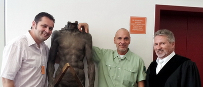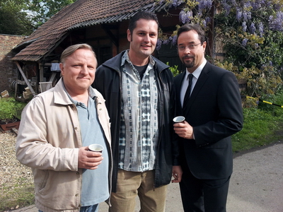 Wolfgang, Marion (Mitte) und ich treffen nach Drehschluß die Schauspieler