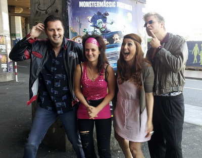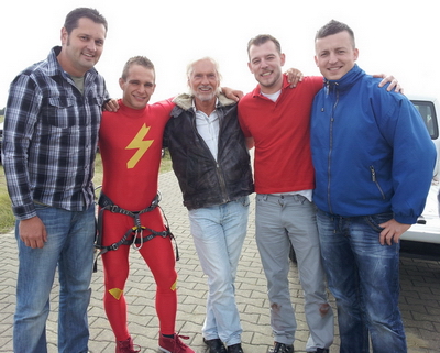 sich nach Drehschluss zu einem netten Gruppenbild auf. Mit dabei auch Sebastian