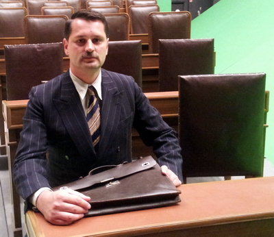 Ich spiele einen Sachbearbeiter in einer Amtsstube in Ungarn