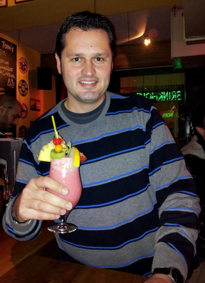 Als „falscher Polizist“ sitze ich in einer Bar und lasse mir einen Cocktail schmecken.