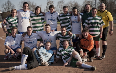 gleichen Fußball-Hobbymannschaft im Verein spiele. Wir hatten einen ganz