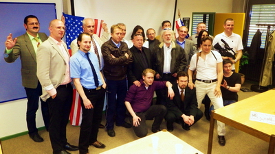 Hier wieder gut gelaunt zusammen nach Drehschluß mit dem „Chef“ Enes, der das