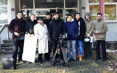 Filmteam und Darsteller präsentieren sich nach Drehschluss für ein Gruppenfoto.