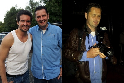 Rechts: nach Drehschluss mit den Kollegen der Polizei.