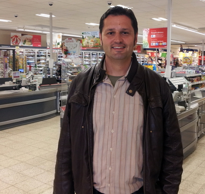 Ich spiele einen Passanten in einem Einkaufscenter.