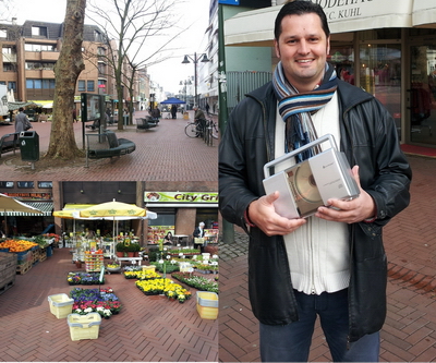 Gedreht wird in der Fußgängerzone von Leverkusen.