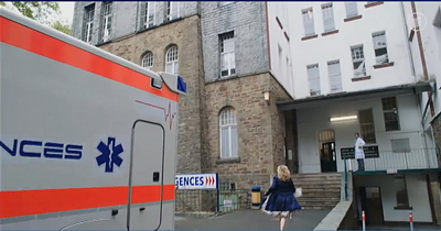Als verletzter Wachmann liege ich auf der Trage bei den Rettungssanitätern.